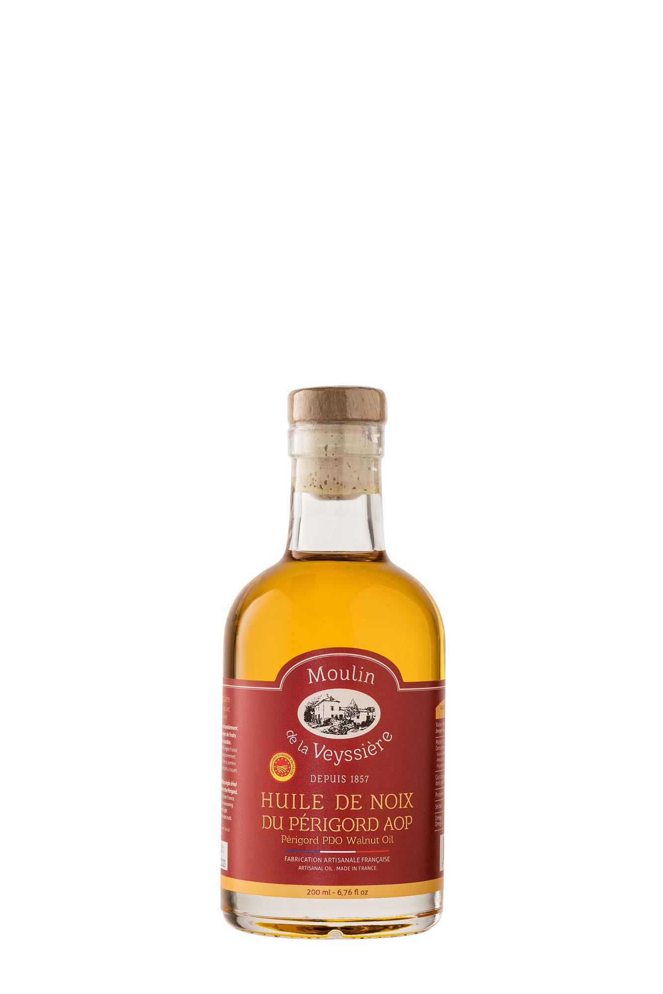 La fabrication des huiles du Moulin de la Veyssière se décompose en trois étapes : la matière première est tout d’abord écrasée pendant plus d’une heure par une meule en silex dans le but d’obtenir une pâte.